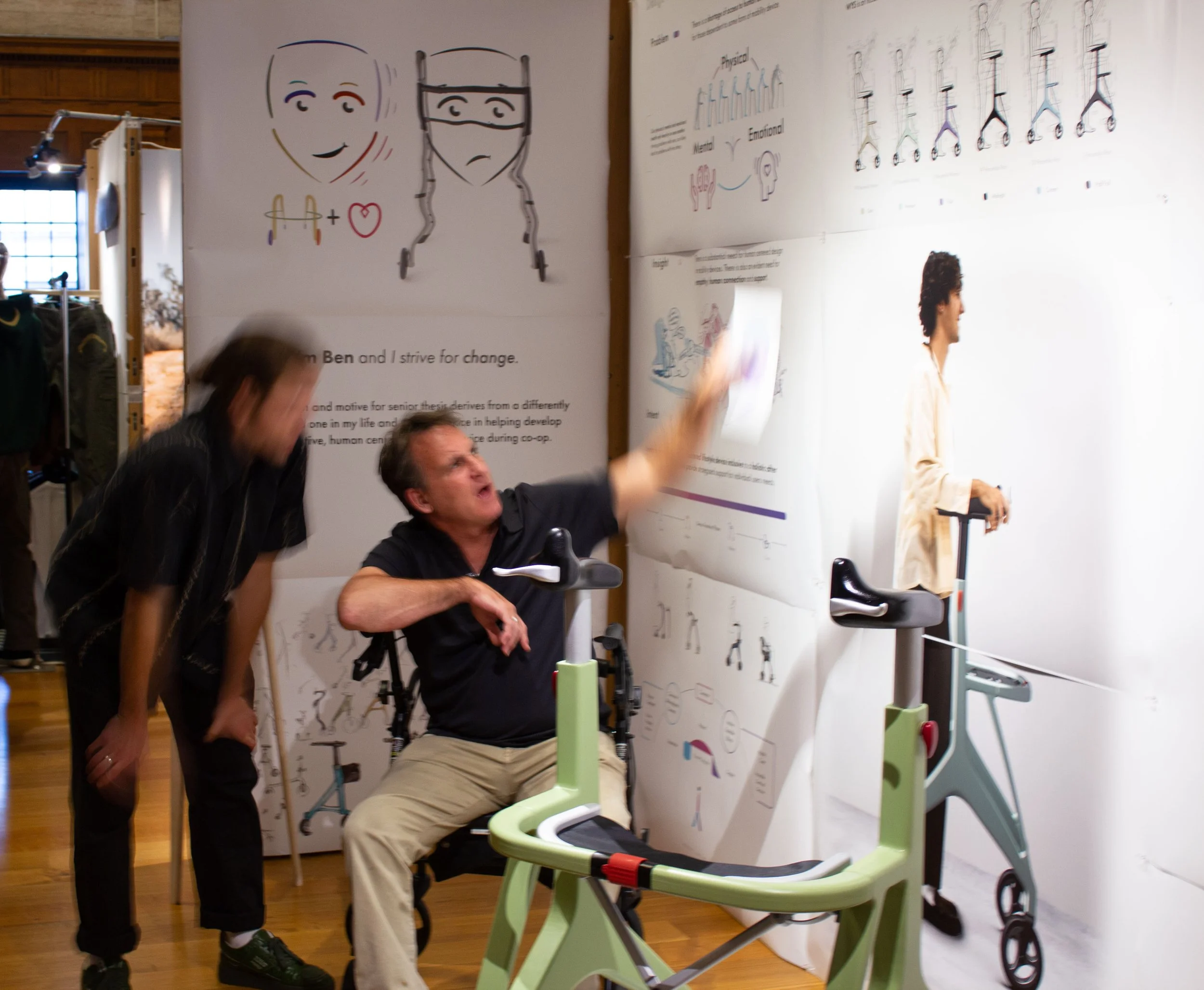 My inspiration and motive for my senior thesis derive from a differently-abled loved one in my life and my experience in helping develop an innovative, human-centered mobility device on co-op. I knew coming into this project how pervasive conventional mobility devices are as well as how systemically flawed the associated institutions are. Whether it is getting adequate health insurance, epistemic activism towards government legislation, or finding equitable mobility devices that suit consumer needs it is far from convenient. Through talking to individuals who use assistive mobility devices I was able to listen, observe, and form insights. It has opened my eyes to the vast opportunity of offering someone more than just a product, experience, or service but an inclusive streamline of support.